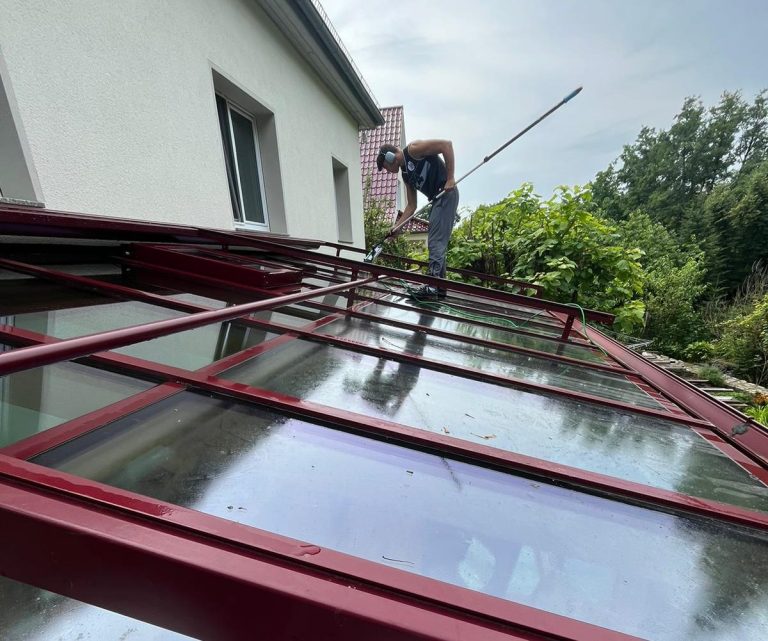 Gründliche Reinigung der Dachverglasung, damit wieder mehr Licht einfällt und dein Wintergarten offen und hell wirkt.